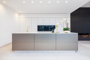 Die Villa verfügt über 5 Schlafräume, 4 exklusive Bäder, zwei großzügige Wohn- und Küchenbereiche sowie ein Büro/Showroom im Untergeschoss mit separatem Zugang. Hochwertige Materialien wie großformatige Feinsteinzeugfliesen, Schüco-Aluminiumfenster, flächenbündige Türen von Josko und maßgefertigte Einbauten von Molteni und Leicht prägen